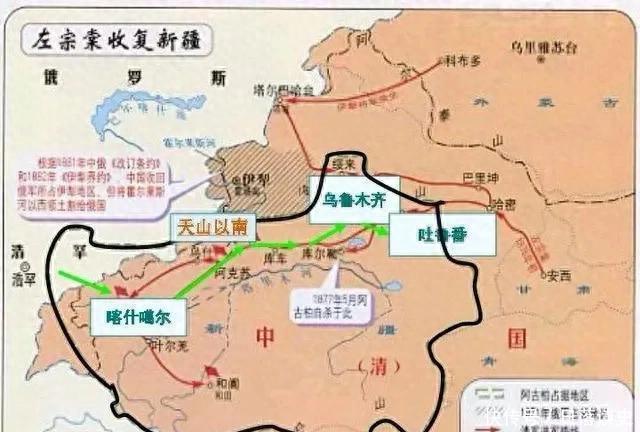 阿古柏的“哲德沙尔汗国”像个“野心家”,把新疆的地盘“瓜分”得差不多了,甚至建立了“沙尔汗国”。俄国也不甘示弱,像个“邻居偷吃你苹果的坏家伙”,在伊犁地区虎视眈眈。